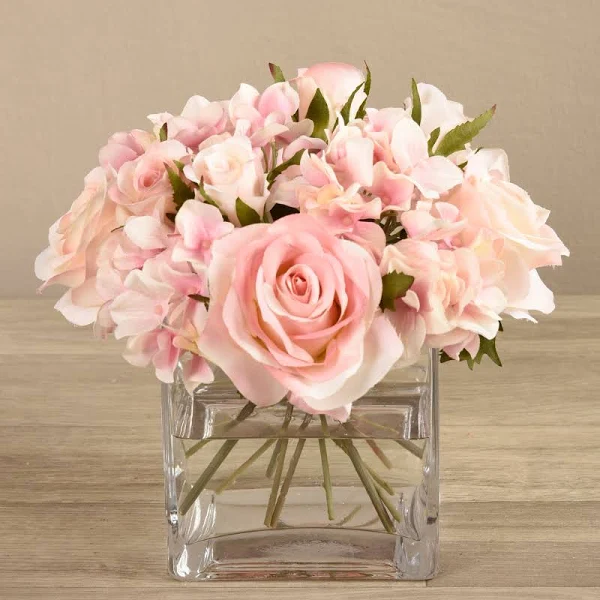 Rose Arrangement In Glass Vase - Medium